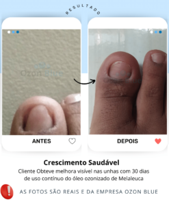 Os fungos de unha são normalmente causados por umidade e utilização de equipamentos sem devida esterilização. O Óleo de Melaleuca é reconhecido como um ótimo antisséptico natural, aliado ao ozônio se torna um bactericida e fungicida impiedoso contra esses parasitas.